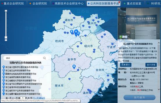 1. 企業(yè)或創(chuàng)業(yè)者從科技云平臺(tái)首頁(yè)www.zjsti.gov.cn登錄系統(tǒng)后點(diǎn)擊"預(yù)約服務(wù)"按鈕進(jìn)入創(chuàng)新地圖(或直接從科技云平臺(tái)首頁(yè)點(diǎn)擊"創(chuàng)新地圖"圖標(biāo)進(jìn)入)。在左側(cè)搜索框內(nèi)輸入所需要的設(shè)備或服務(wù)的關(guān)鍵字(如:測(cè)試),點(diǎn)擊搜索按鈕即可查找到符合條件的載體及服務(wù)信息。